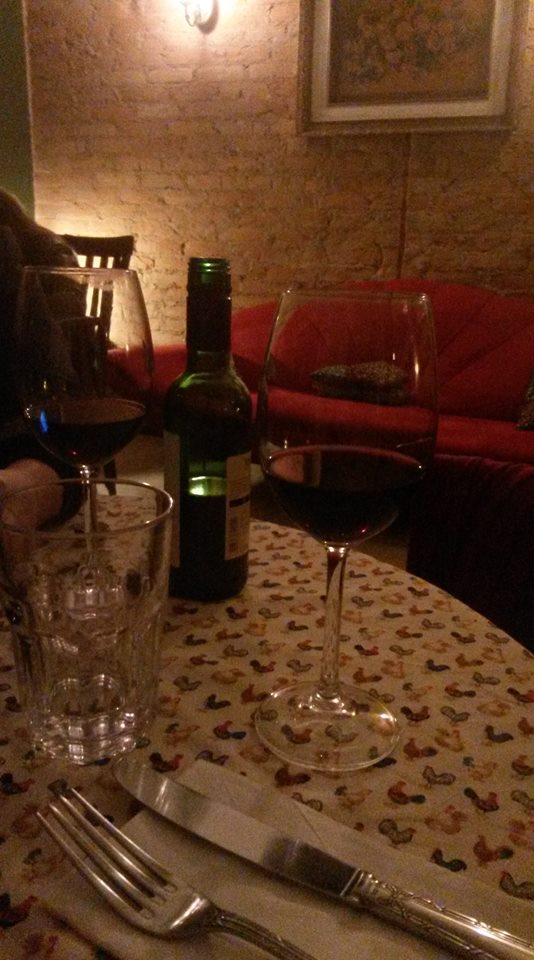 De entrada, fomos (para variar) de carpaccio, que foi um dos melhores que já comi na vida! A fatias finíssimas de filé vinha com um molho especial a base de maionese caseira, mostrada, molho inglês, parmesão e alcaparras. Delícia! Para o prato principal, escolhemos um clássico: Bouef à la Bourguignonne, nossa famosa carne cozida. Mas, nessa versão, a carne é cozida por mais de 12 horas em um molho de vinho tinto, cebolas e cogumelos, e vem acompanhada de um purê de batata incrível. Sabe quando a comida provoca aquela sensação de aconchego? Então, foi assim! Para acompanhar um vinho chileno excelente que nunca mais encontrei em nenhum lugar – La Compania, Carmenére (2012).