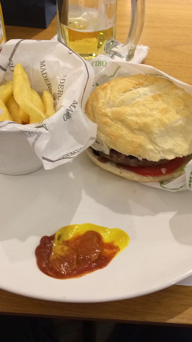Para comer, fomos do tradicional Duke’n Duke (R$ 29,90) – hambúrguer de picanha, com queijo, molho de tomate caseiro e alface americano. Para acompanhar, batatas rústicas picantes, que lá têm outro nome, mas não me lembro. A outra opção seria batata chips.